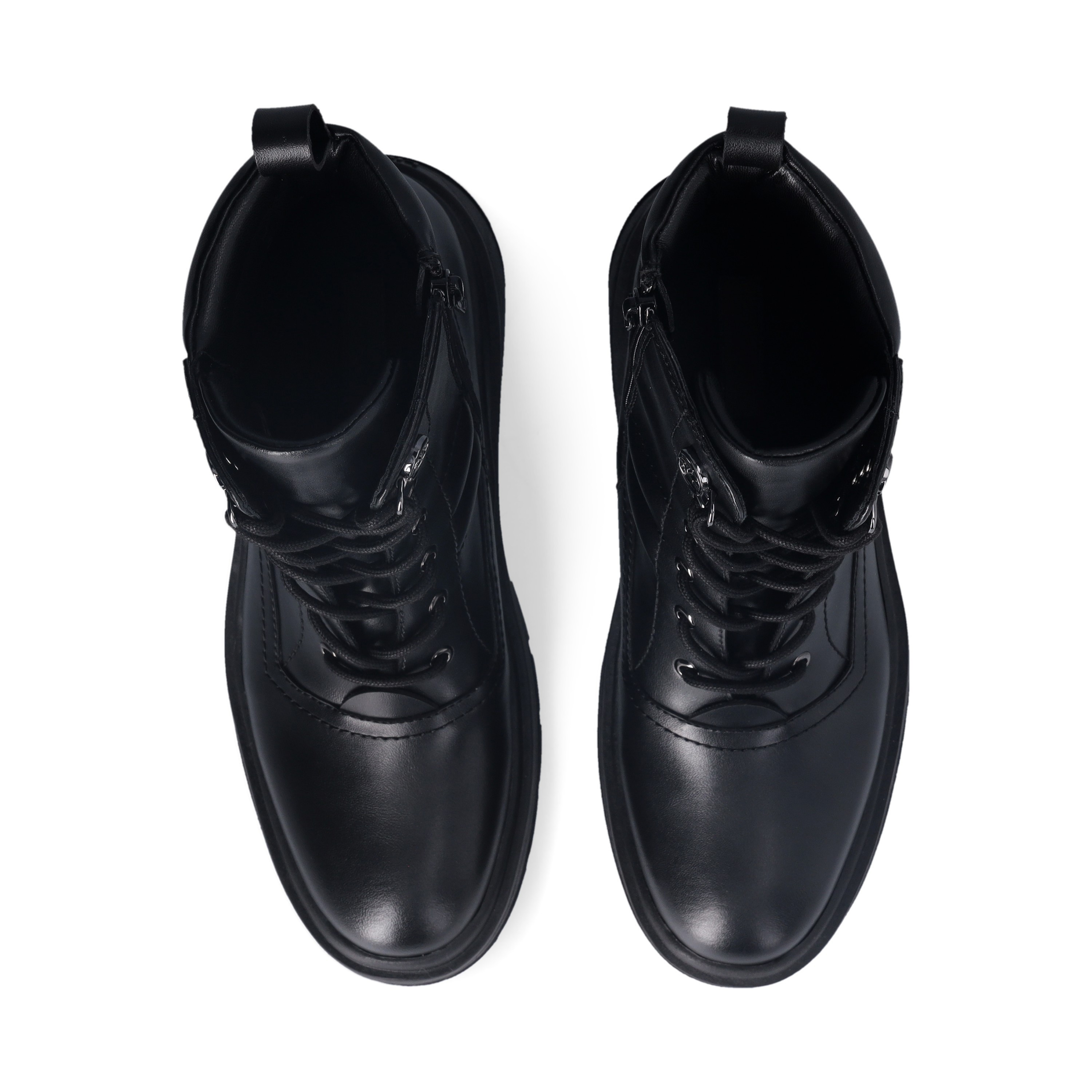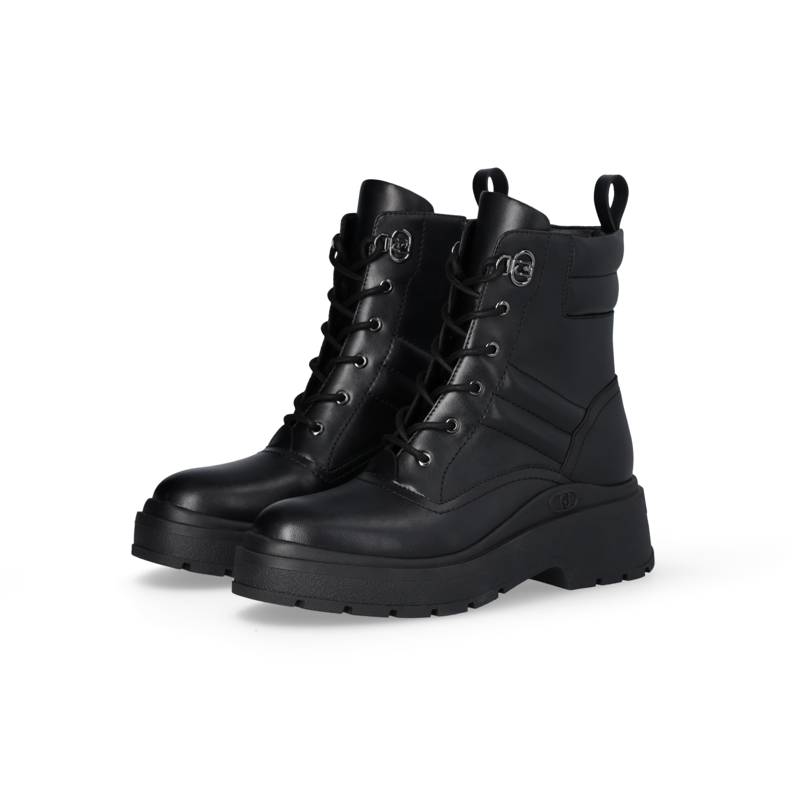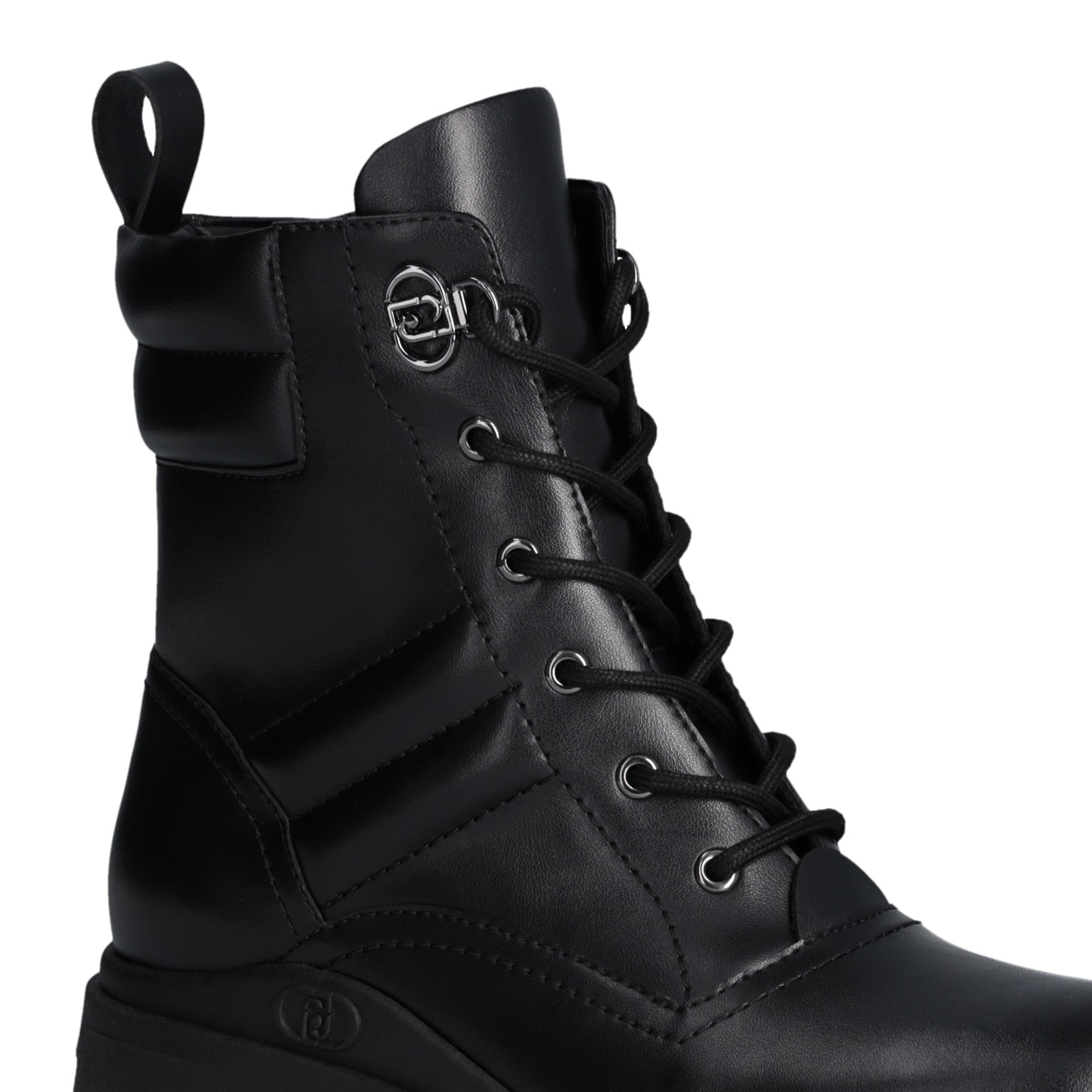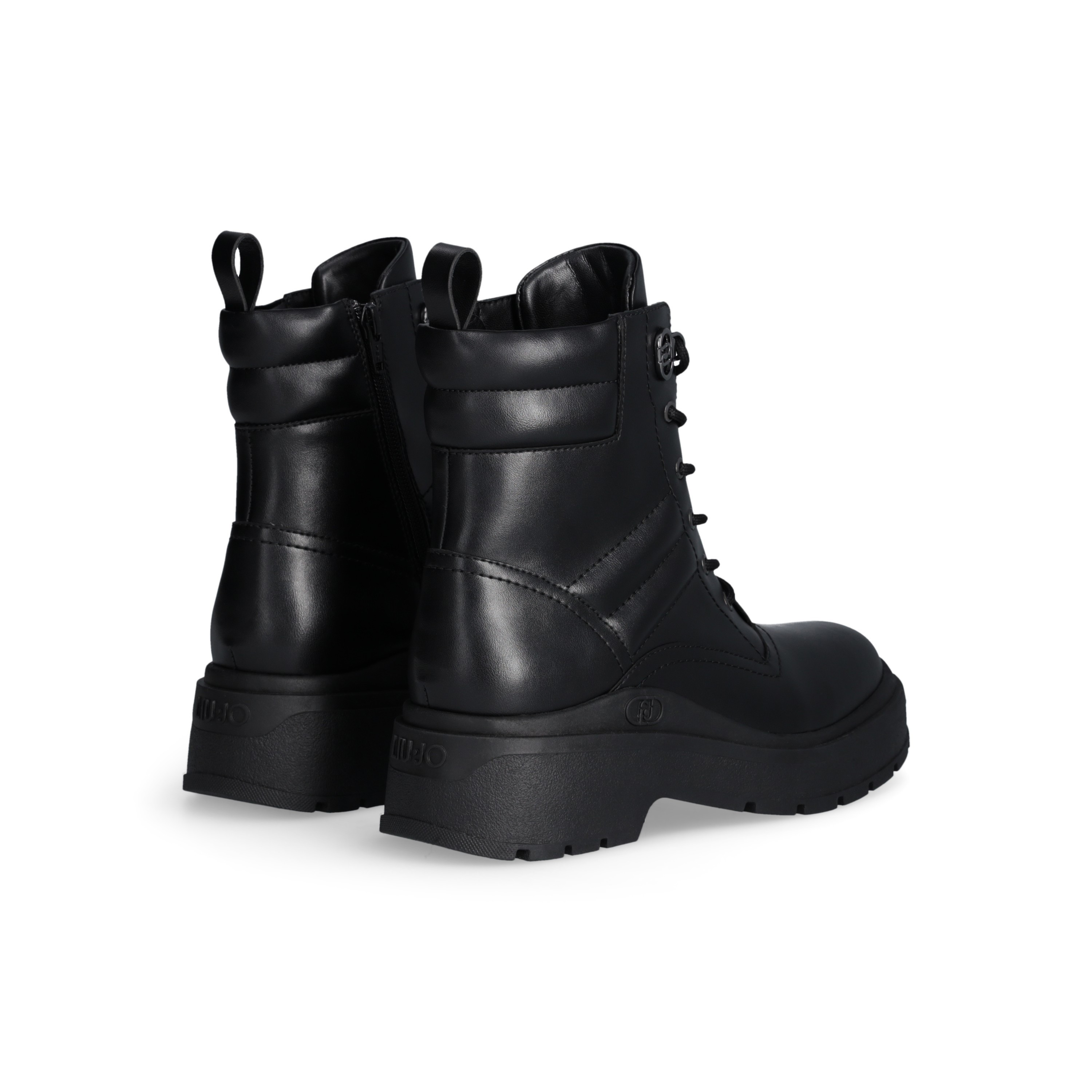 Anfibi in pelle Liu Jo. Chiusura con lacci tondi con passalaccio logato, agevolata dalla zip. Logo lettering in rilievo, e fondo gomma dentellato 5 cm e gambale 12