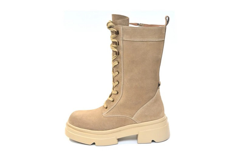 Anfibio donna Hero in pelle scamosciata Emanuelle Vee. Chiusura con lacci agevolata dalla zip. Interno in pelle con sottopiede imobottito su fondo gomma 5cm, gambale 24 cm.