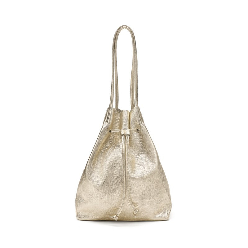 Frau borsa a secchiello in pelle laminato platino B363