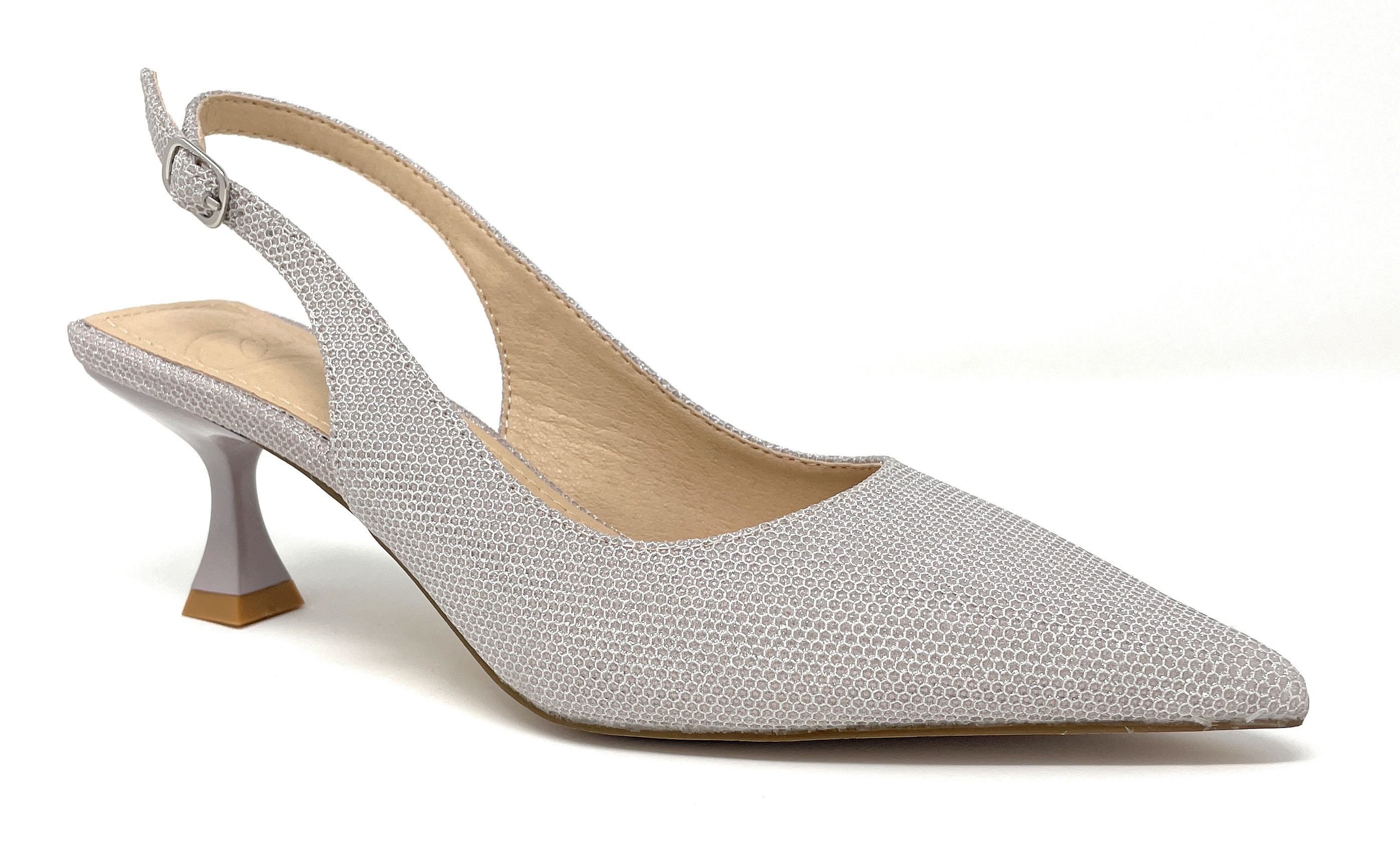 Slingback Nony Celebrity in tessuto diamantato. Interno in pelle con sottopiede imbottito. Tacco rocchetto 7 cm.