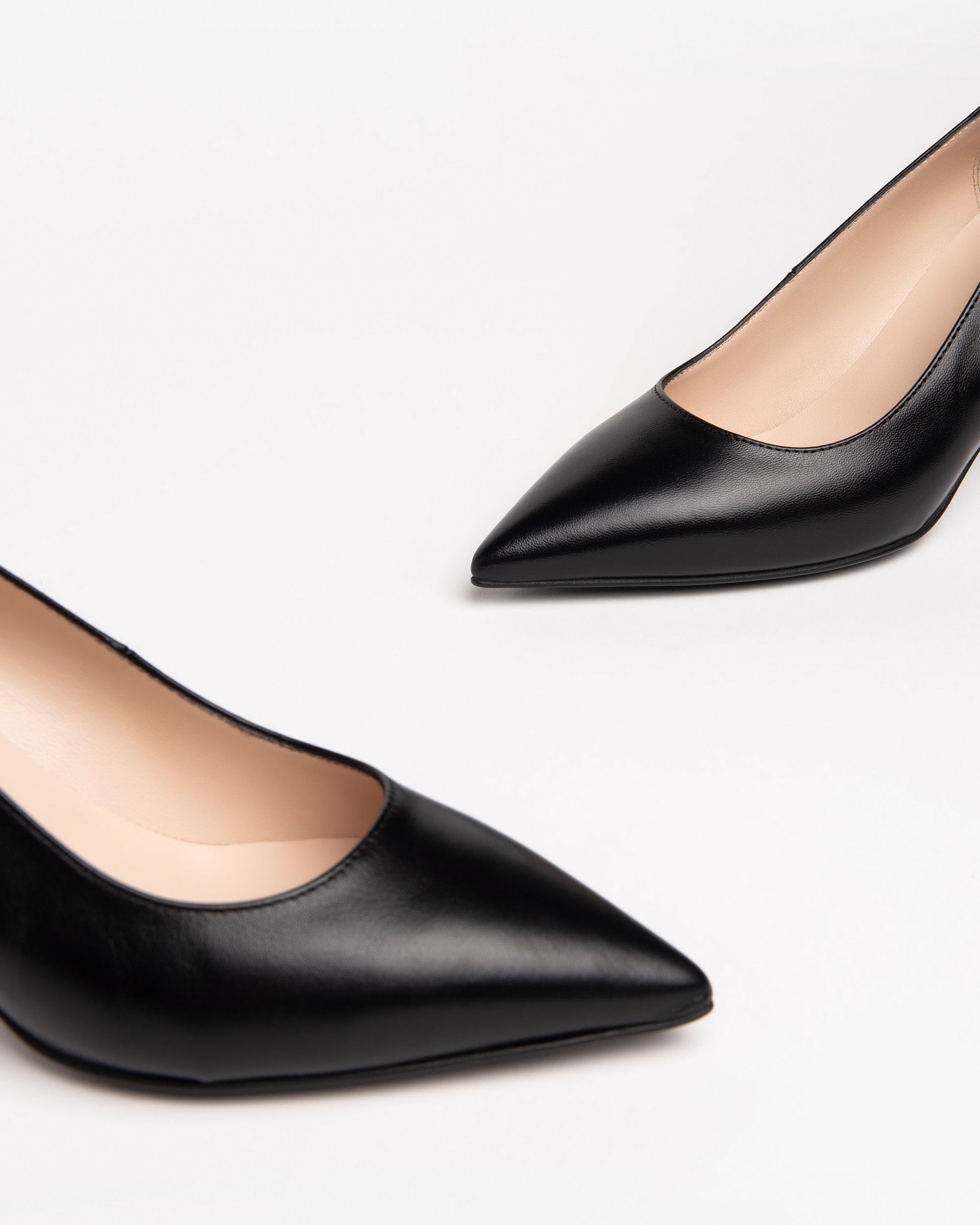 Décolleté donna in pelle Nero Giardini. Interno in pelle con morbido sottopiede in memory su fondo gomma e tacco a rocchetto 7,5 cm. Made in Italy.