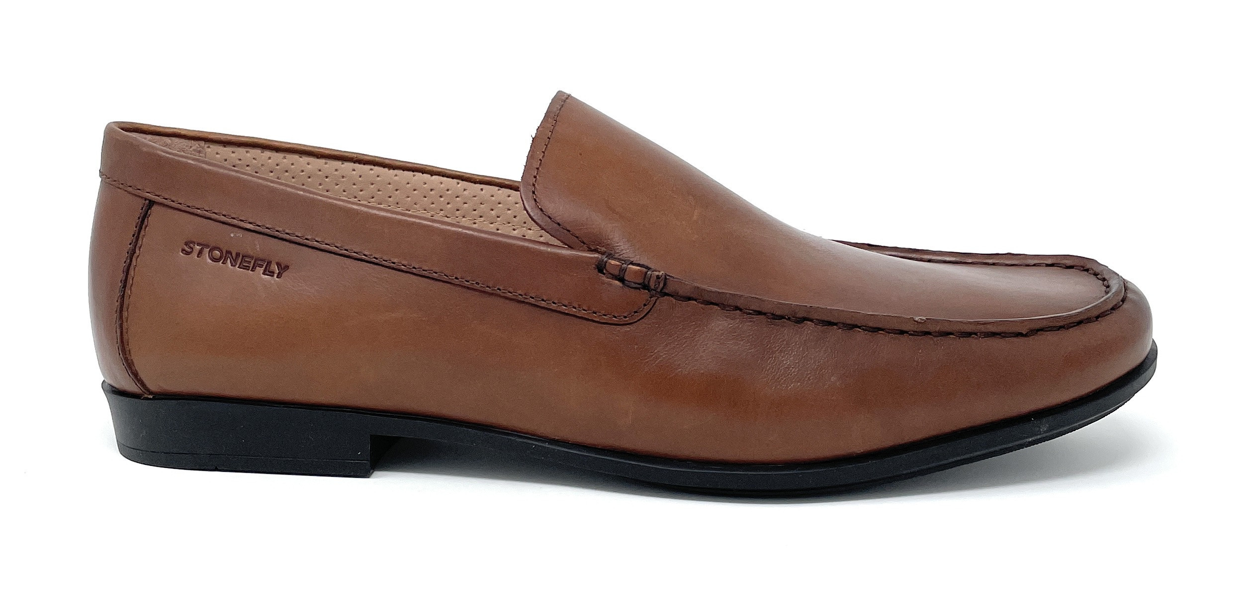 Stonefly mocassino in pelle marrone liscio con suola in gomma, un classico senza tempo per un look curato. La tecnologia Blusoft regala passi morbidi e leggeri, per un livello di comfort e ammortizzazione inimitabile.