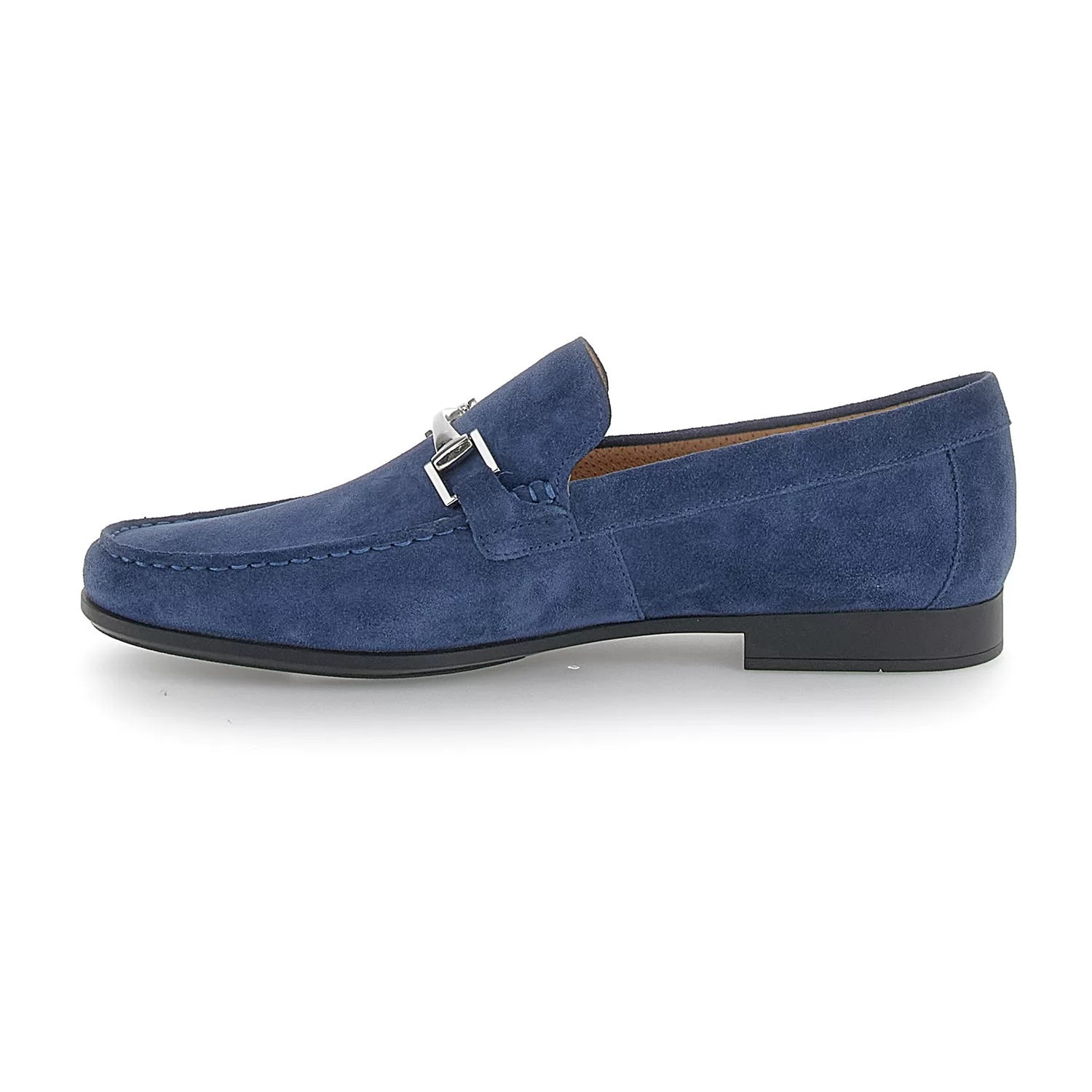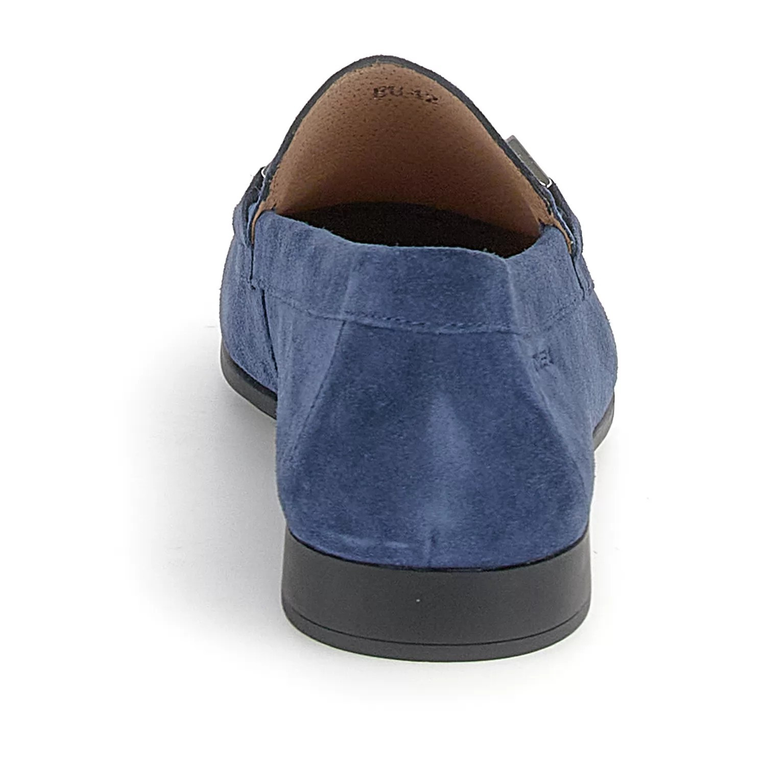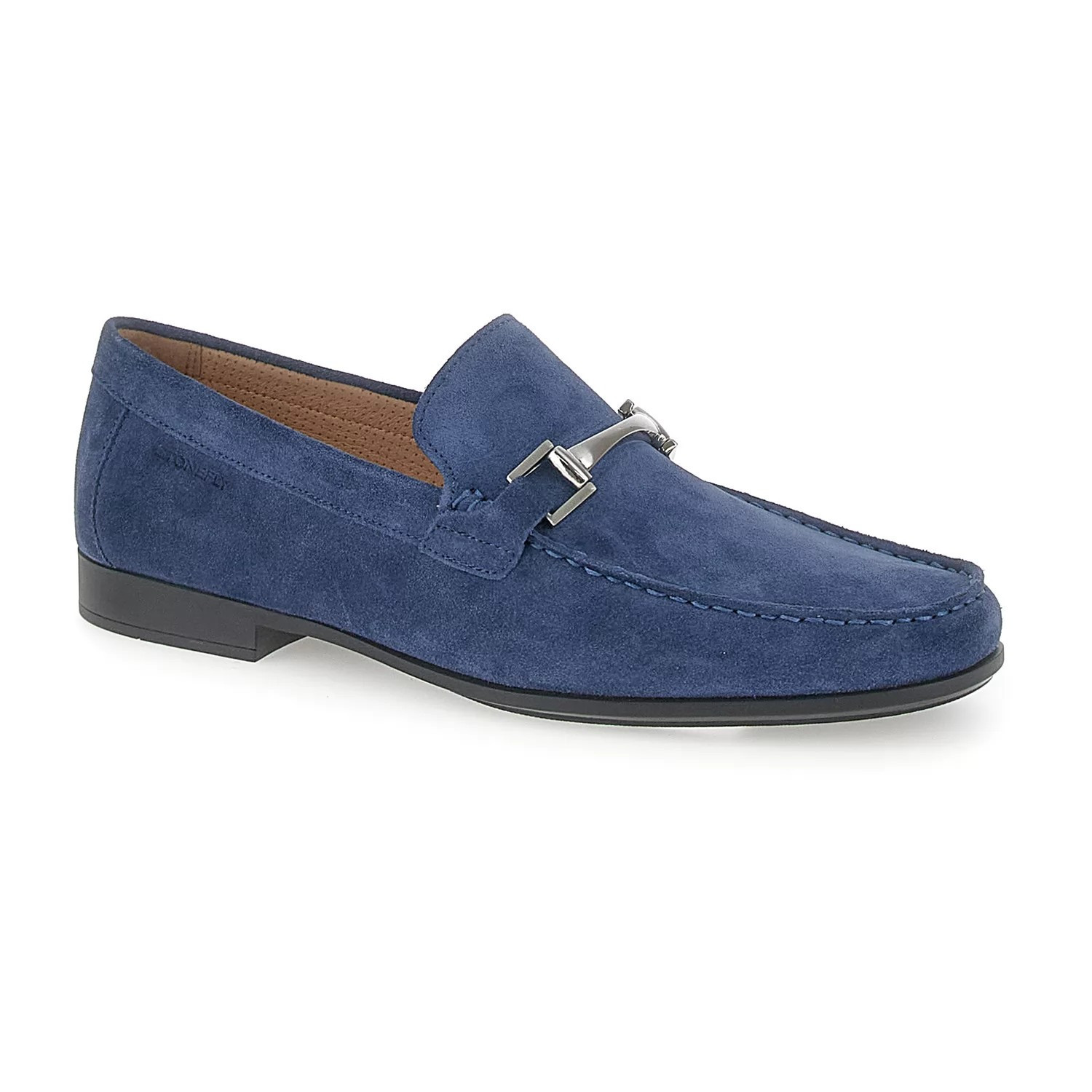 Stonefly mocassino con morsetto in camoscio color denim. Fondo gomma con tecnologia blusoft per passi comodi e leggeri.