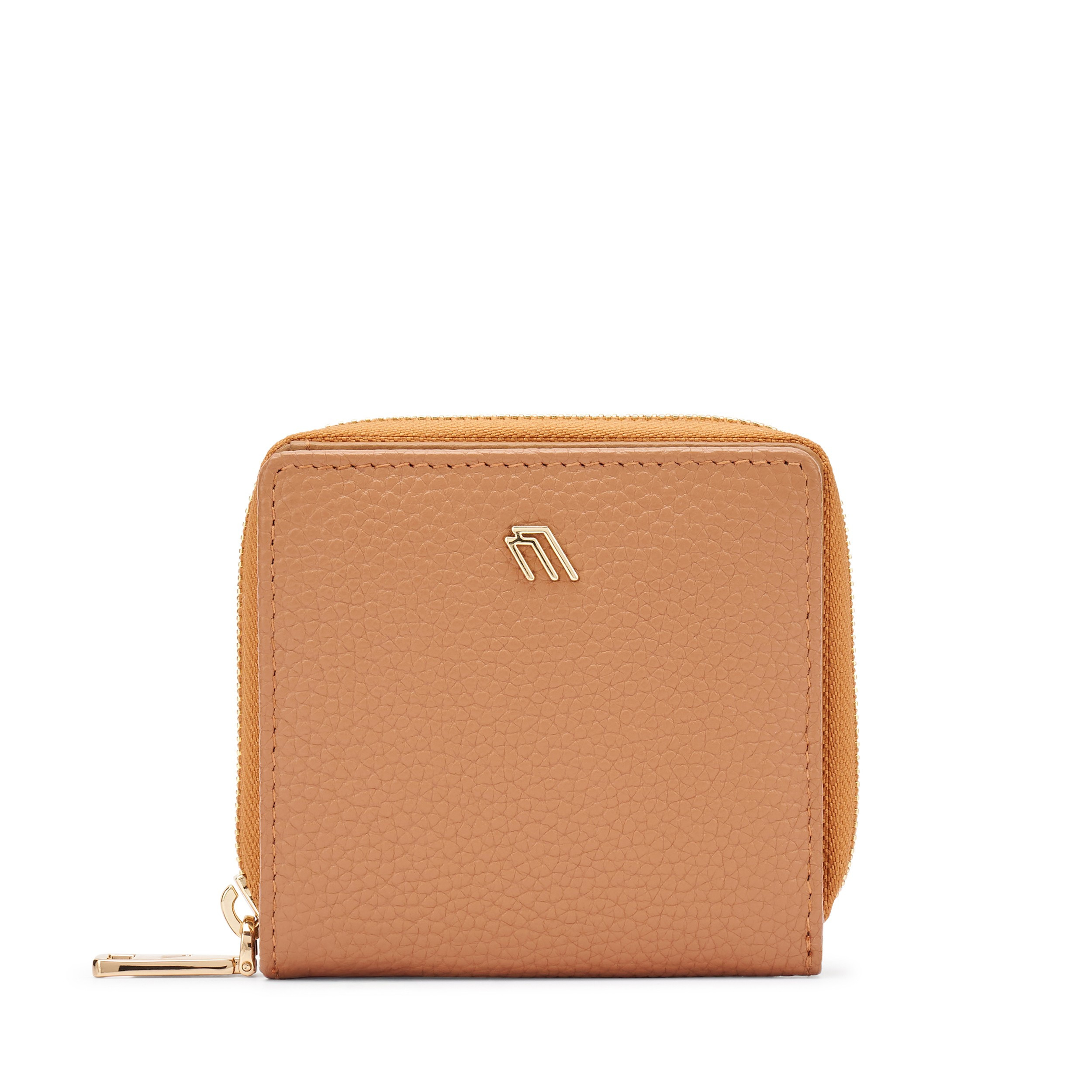 Portafoglio mini in pelle bottalata Frau. Con golden zip e logo, compatto e funzionale. 10x10x2,5.