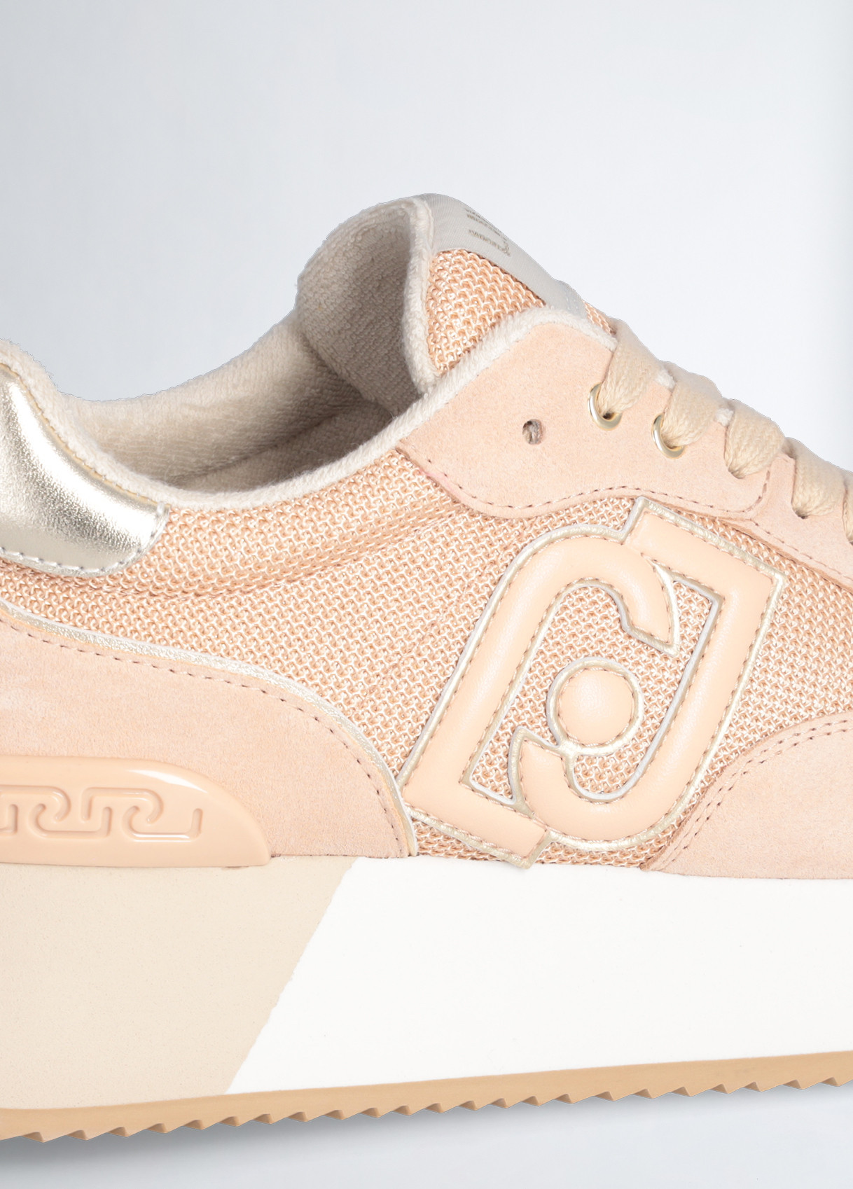 LIU JO sneakers papaya S3277 con tomaia in suede e brighty mesh. Logo con profili metallizzati, fodera interna effetto spugna e plantare estraibile. Suola platform bicolor 5 cm.