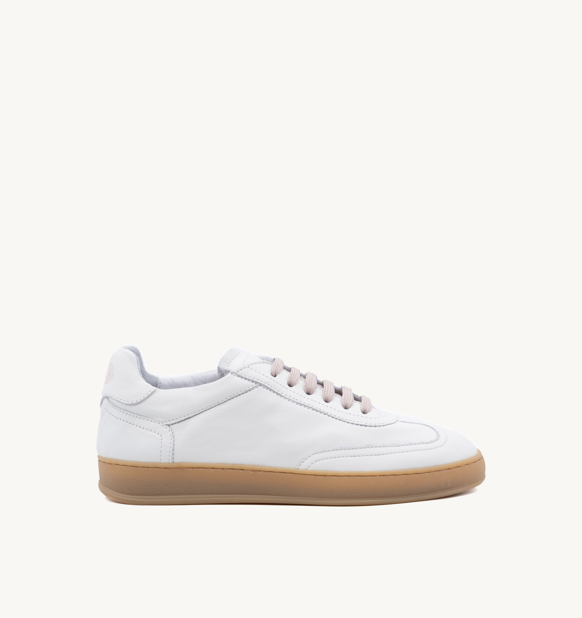 Sneakers donna in morbida pelle Soldini80. Comfort senza pari, grazie al tomaio destrutturato al plantare estraibile foderato in pelle e alla suola a scatola ultra leggera in gomma. Venduta con il doppio laccio intercambiabile. Made in Italy.