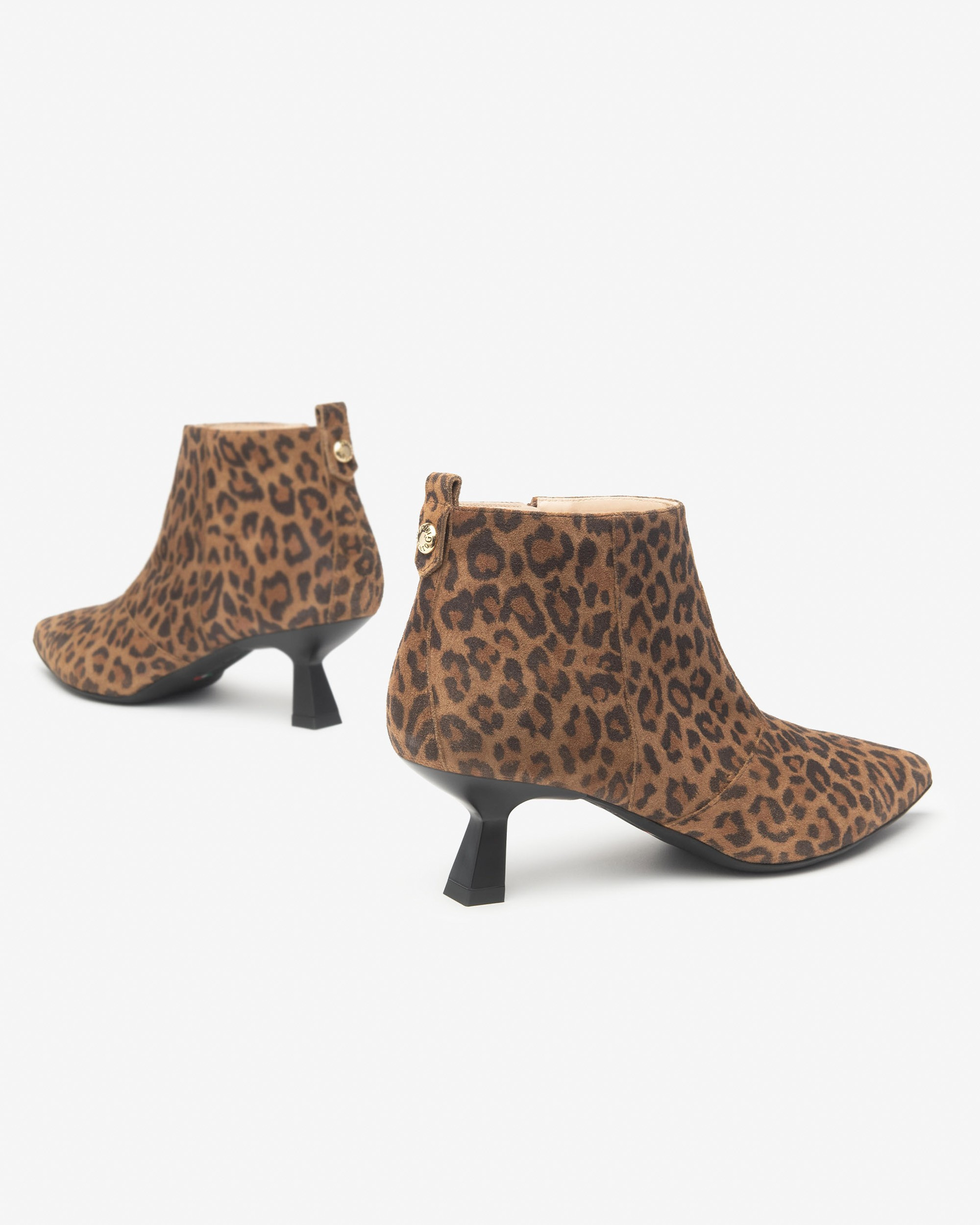 Tronchetti donna in suede maculato Nero Giardini. Chiusura con zip laterale, interno in pelle con morbido sottopiede in memory su fondo gomma e tacco svasato 5 cm. Made in Italy