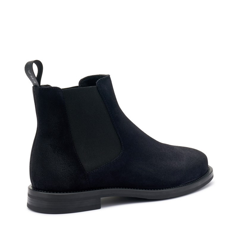 Beatles donna in pelle scamosciata con elastico bilaterale e pull up sul retro che facilitano la calzata. Interno in tessuto, sottopiede in pelle. Suola 2,5 cm. Gambale 11,5 cm. Calzata comoda, veste più abbondante del normale. Made in Italy.