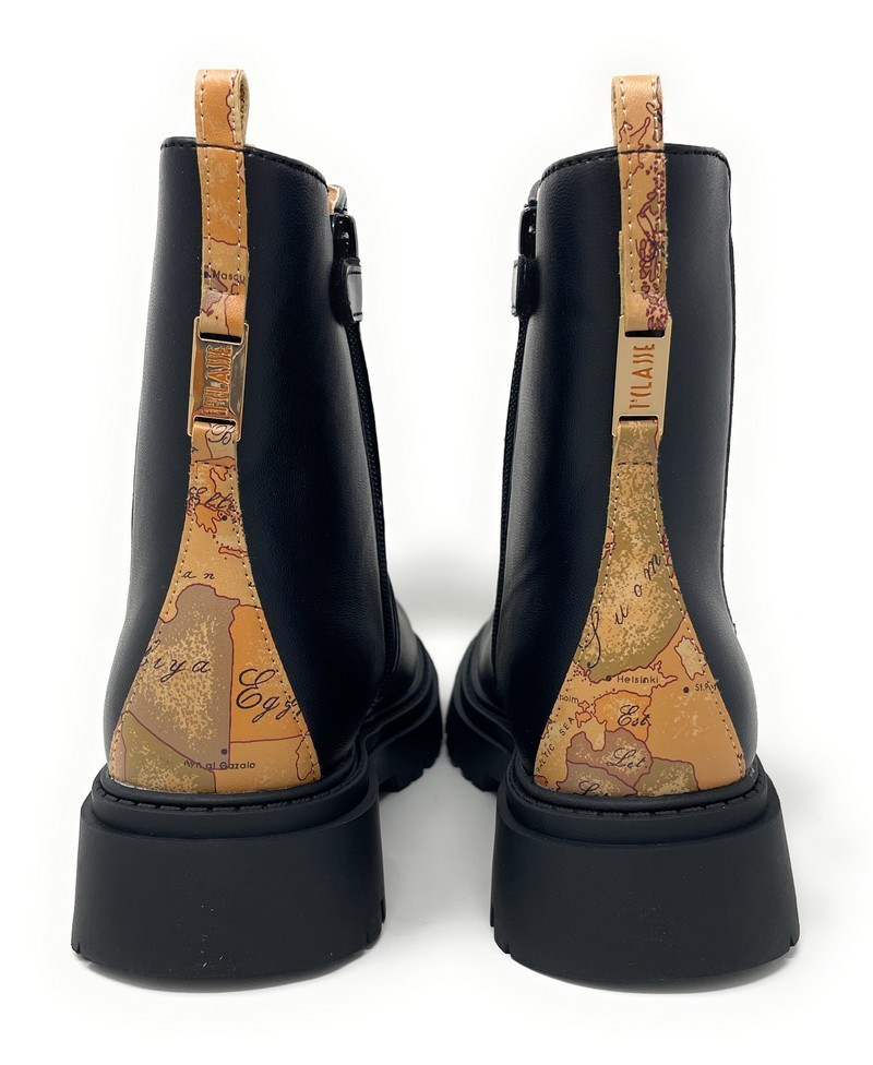 Tronchetti con inserto geo sul tallone Alviero Martini. Chiusura con zip sul lato interno, plantare in pelle estraibile e fondo gomma 4,5 cm.