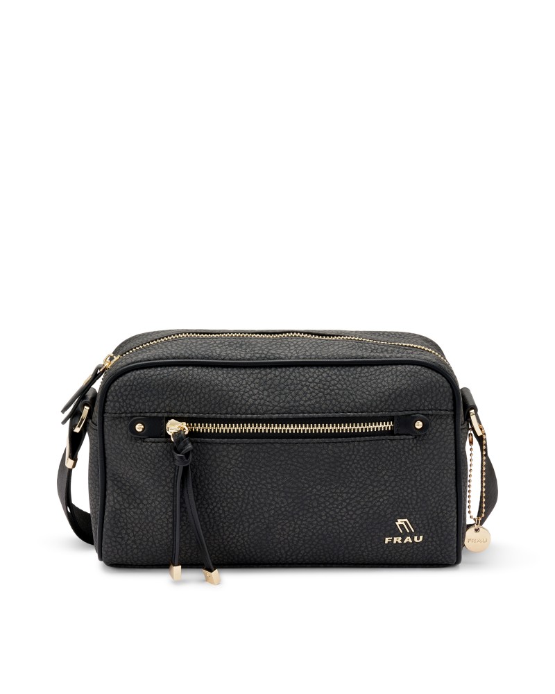 Borsa piccola in materiale tecnico con tracolla Frau. Chiusura con zip, scomparti interni con fodera in tessuto. 25x16x9. Made in Italy.