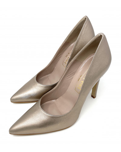 Teresi décolté satin sasso con sottopiede leggermente imbottito e fondo gomma per una calzata facile e confortevole. Punta affusolata e tacco a stiletto 10 cm.