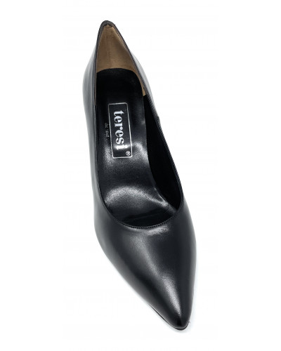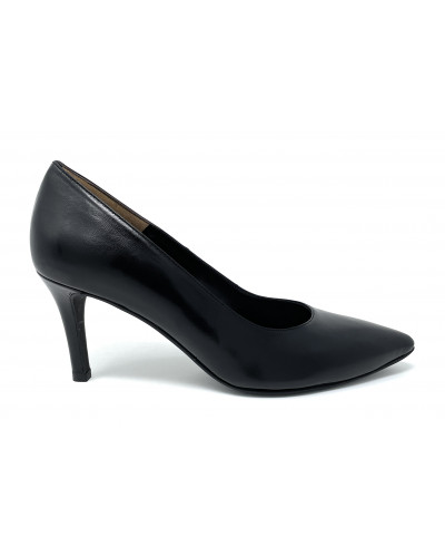 Teresi décolté in morbida pelle con sottopiede leggermente imbottito e fondo gomma per una calzata facile e confortevole. Punta affusolata e tacco a stiletto 7 cm.
