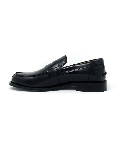 Exton mocasino con fascetta in abrasivato nero. Fodere in pelle, sottopiede leggermente imbottito e fondo cuoio con inserto in gomma.