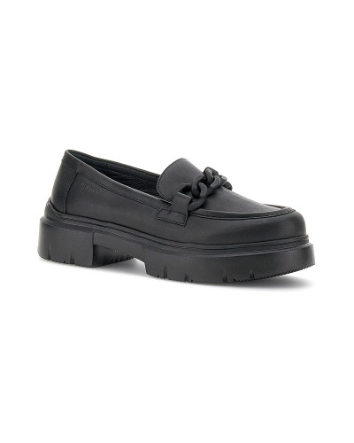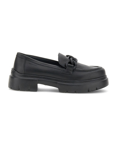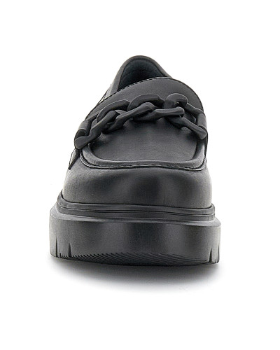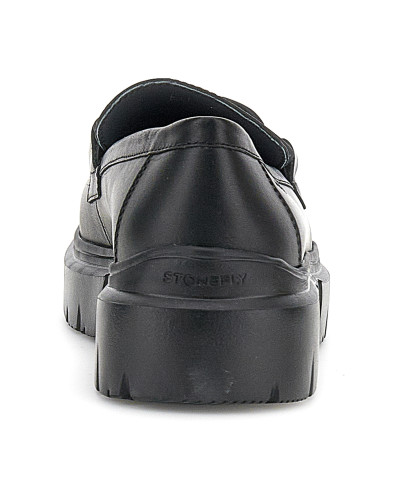 Stonefly mocassino con catena in pelle nera. Morbido sottopiede e fondo gommma leggerissimo 4 cm.