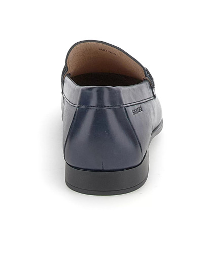 Stonefly mocassino con morsetto in metallo, in pelle blu. Fondo gomma con tecnologia blusoft per passi comodi e leggeri.