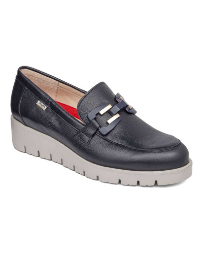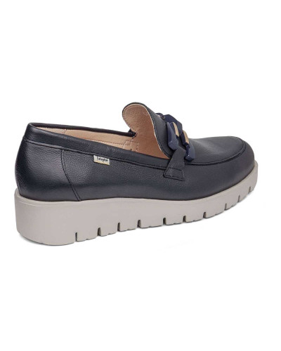 Callaghan mocassino in pelle blu con accessorio catena. Interno in pelle, plantare in memory estraibile su fondo zeppa leggero e flessibile 5cm.