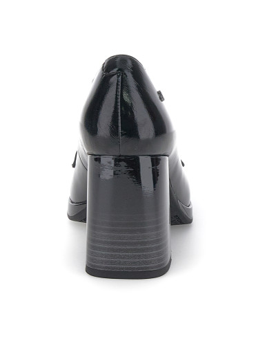 Mocassini donna con tacco in pelle lucida Stonefly. Interno in pelle con sottopiede imbottito con morbido fondo gomma. Tacco a blocco 7,5 cm.