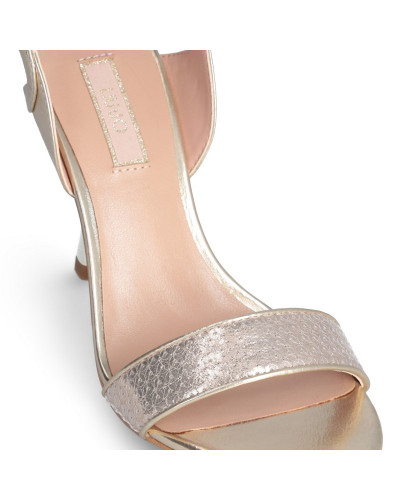 Liu Jo sandalo Miriam 06 platinum con fascetta con paillettes. Chiusura con cinturino, tacco 10 cm.