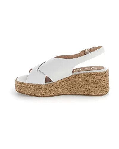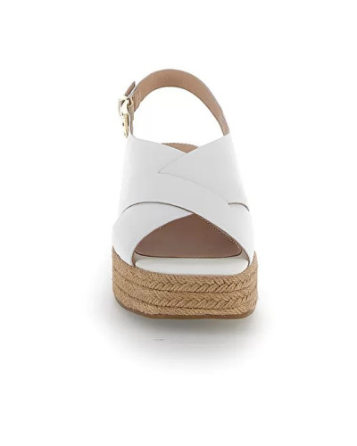 Stonefly sandalo con zeppa da donna in pelle white. Modello comodo, leggero con tomaia intrecciata e dettagli in corda nella zeppa. Altezza 6,5 cm.