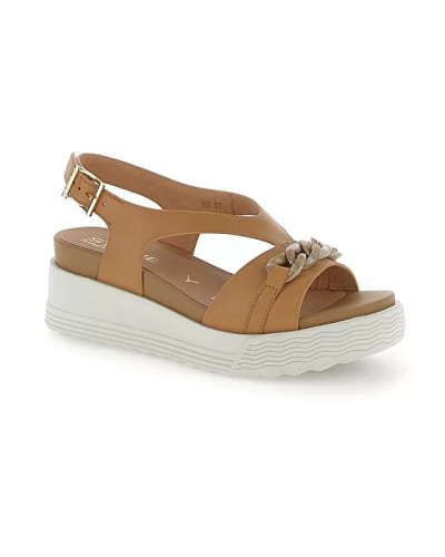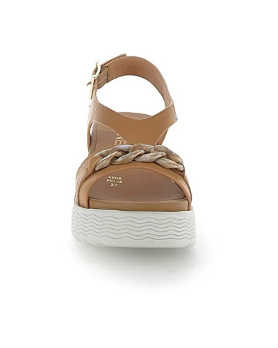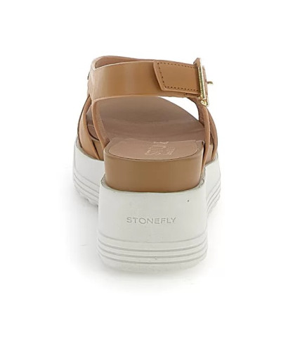 Stonefly sandalo con zeppa in pelle con tomaia impreziosita da catena in tinta. La calzatura incorpora la tecnologia Second Skin che rende le scarpe morbide e leggere, proprio come indossare una seconda pelle. Suola in EVA, altezza 6 cm.