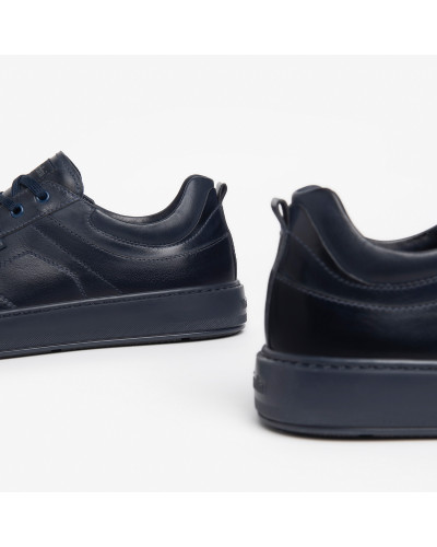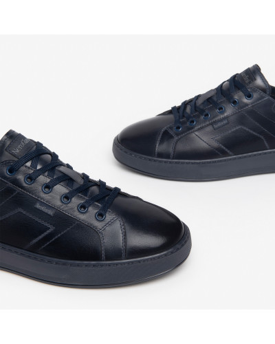 Nero Giardini sneakers in pelle blu. Interno in pelle, sottopiede estraibile con tecnologia DryGo! assorbe l'umidità e garantisce confort e benessere. Fondo gomma 3 cm. Made in Italy.
