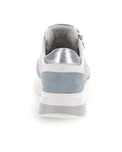 Stonefly sneakers in nappa, tessuto e camoscio traforato con zip per una calzata pratica, veloce e fresca. Sottopiede estraibile in memory. Fondo zeppa 4 cm.