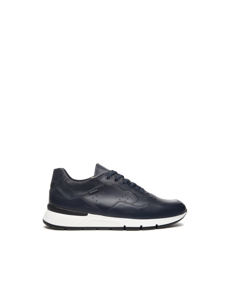 Sneakers uomo in pelle Nero Giardini con inserto in contrasto sul tallone. Interno in pelle con plantare estraibile. Fondo gomma 4,5 cm. Made in Italy.