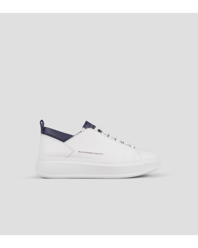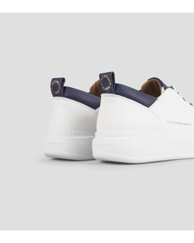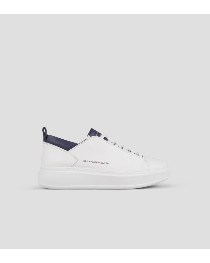 Sneakers uomo in pelle white blu Alexander Smith. Le Wembley rappresentano l'equilibrio tra comodità, stile e sobrietà, con dettagli unici che fanno la differenza. Plantare in pelle estraibile, fondo gomma 3cm + 1cm di soletta. Made in Italy.